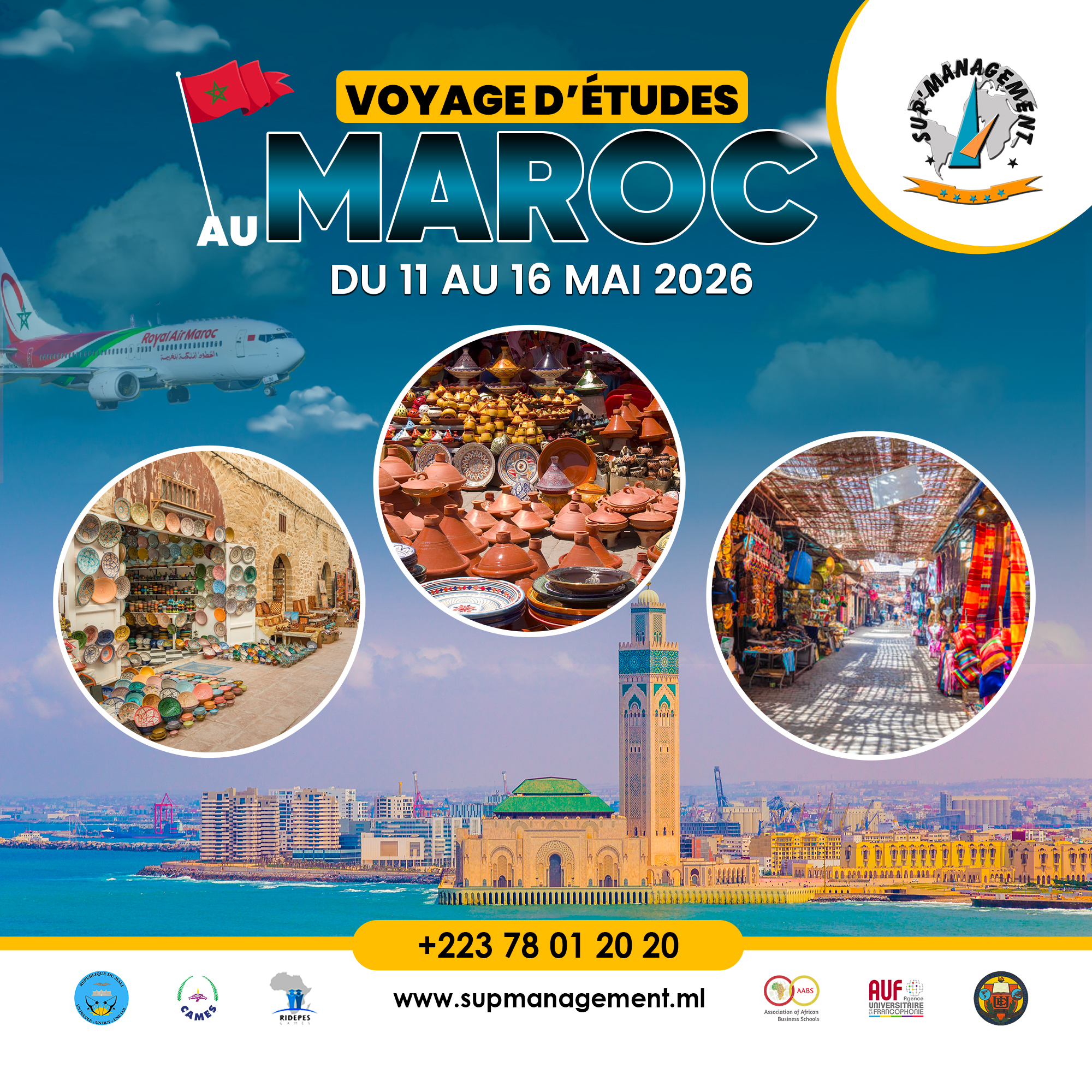 Terre de contrastes, de modernité et de traditions.Carrefour entre l’Afrique, l’Europe et le monde arabe.Un pays qui inspire, qui innove, qui rayonne.Un voyage d’étude à l’international, ce n’est pas un simple déplacement.C’est franchir un cap.C’est observer d’autres méthodes.Comprendre d’autres marchés en pleine dynamique.S’ouvrir à une culture riche, ambitieuse et tournée vers l’avenir.C’est élargir sa vision.Prendre confiance.Se confronter à d’autres standards.Voir plus grand. Beaucoup plus grand.Pour beaucoup d’étudiants, une telle opportunité reste un rêve.Pour les étudiants de Sup’Management, elle devient une réalité.